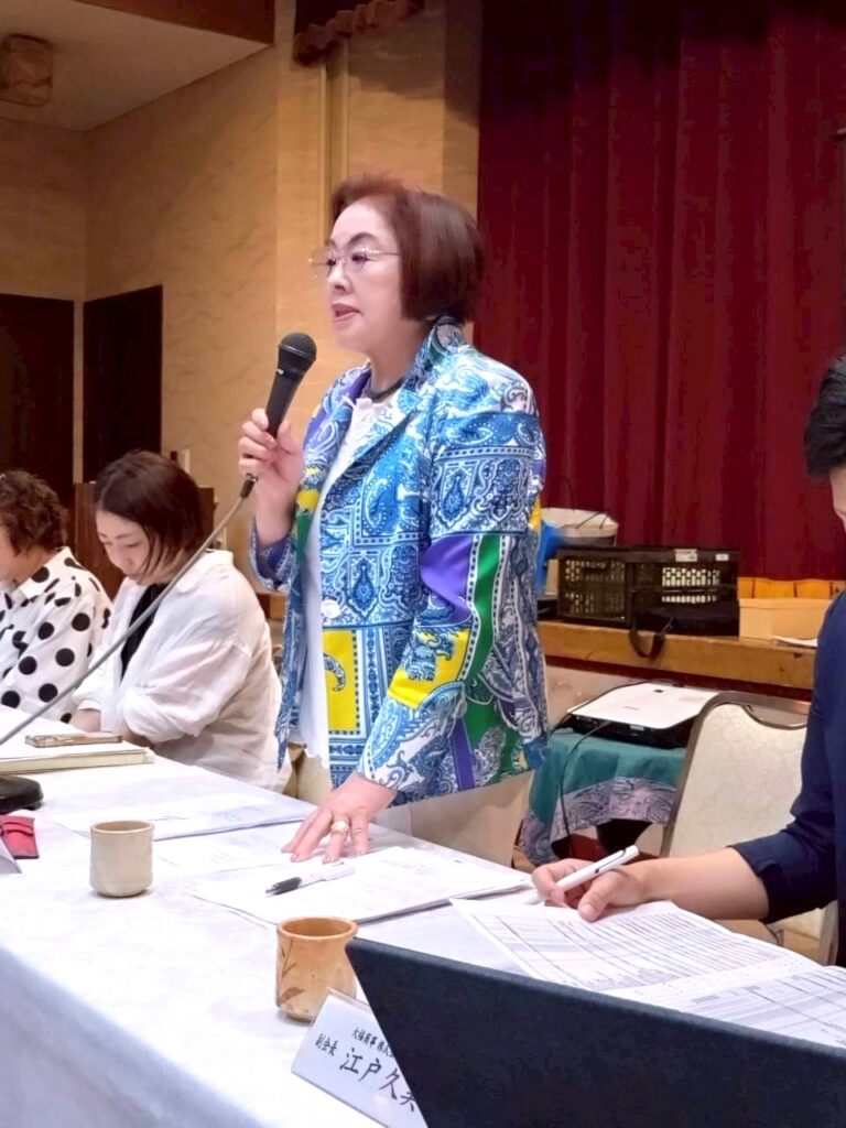 活動指針先達は古賀真子さん、井形会長の挨拶のあと議事に入りました。