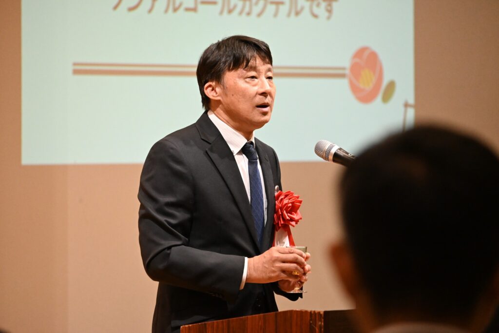 ご来賓よりご挨拶を頂いたあと、大牟田警察署長による乾杯のご発声により、大牟田商工会議所女性会のシンボル「咲椿」をイメージした赤いノンアルカクテルで乾杯!